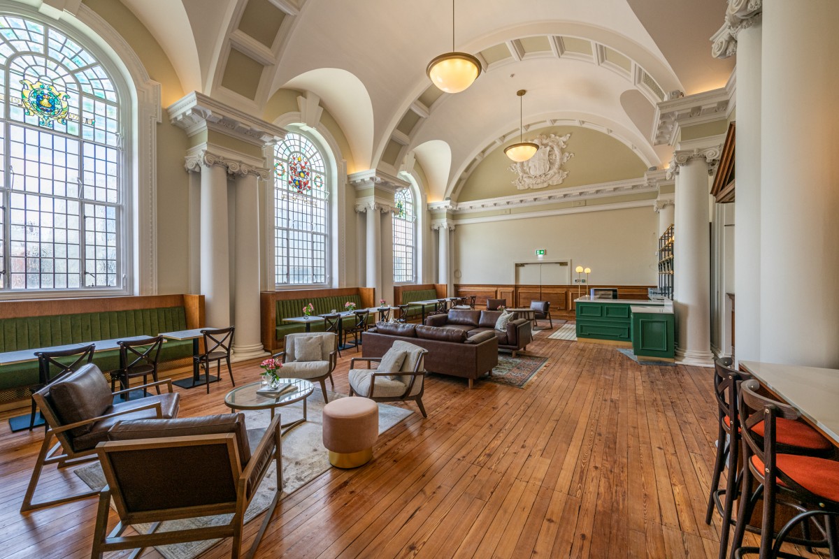 The new paintwork is indistinguishable from the old in the original Old Courthouse with its high vaulted roof. Below the restaurant, the toilets are constructed in the old holding cells. The original stairs up to the dock are still in place and the old door to the safe remains for posterity. Many of the original feature chandeliers were retained and refurbished to ensure they can be enjoyed for many years to come.