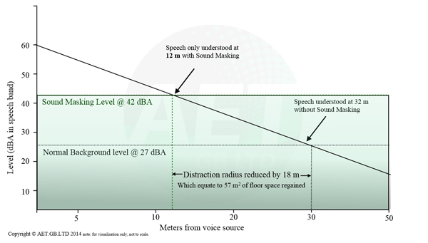 However, in an open plan area speech privacy is less practical, with reducing the distance conversations can be understood becoming the practical goal. With sound masking the radius in which speech can be understood is greatly reduced by raising the background noise level, therefore reducing the speech to noise ratio.