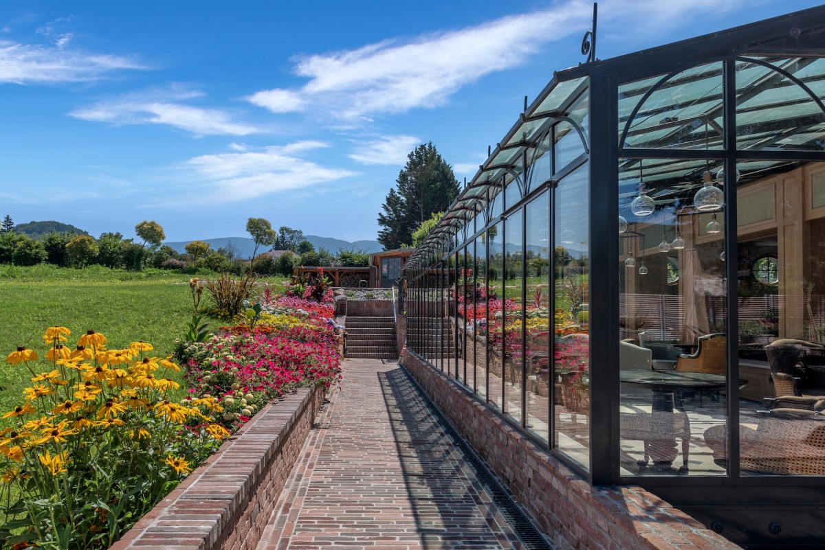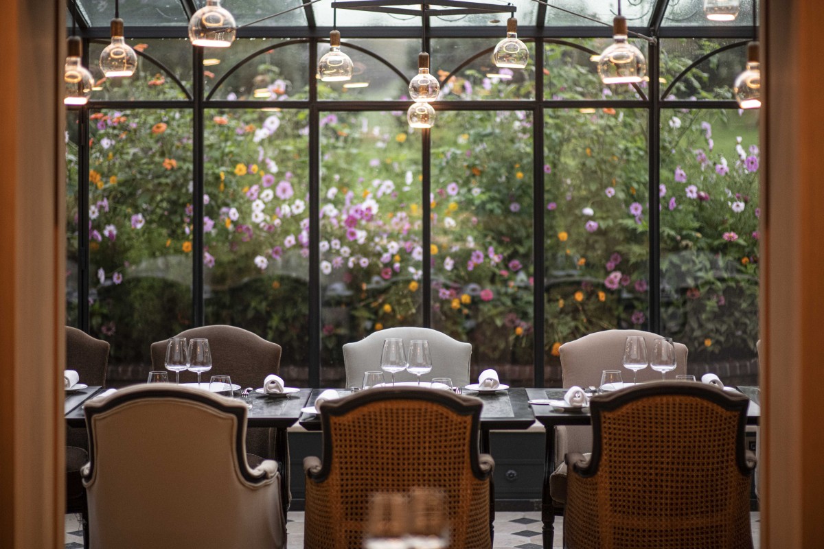 The restaurant, La Table du Château, and its crowning glory, the sculptural “ship’s hull” frame, has been decorated using noble materials and finishes. The dominating colours are variations on the themes of celadon, beige, taupe and terra cotta in a range of textures and textiles. Panels of blond oak, a decorative fresco, comfortable benches, wing chairs and an eye-catching iron chandelier with its faux candles, furnish the space. The granite tables, made from Egyptian stone that required an old quarry to be exceptionally reopened, echo the anthracite cabochons of the travertine floor and the shades of the Belle Époque glass roof. But when the weather is clement, nothing compares to al fresco dining on La Broderie, the outdoor terrace seating 50, to take in the exceptional panorama of the landscaped gardens and flowerbeds. The hidden gem worth discovering however is La Table du Jardinier. Located under the ‘Gloriette’, in the heart of the vegetable garden, it offers a gourmet and bucolic escape surrounded by greenery.