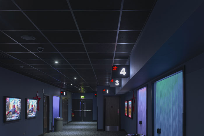 Ceiling Contractor, David Gardiner of D&G Ceilings in Cheltenham fitted the Color-all tiles in the new Cineworld auditoriums using RockLink 24 FasTrac grid in black; the ideal system for installations, which can otherwise be cumbersome as David explained:
