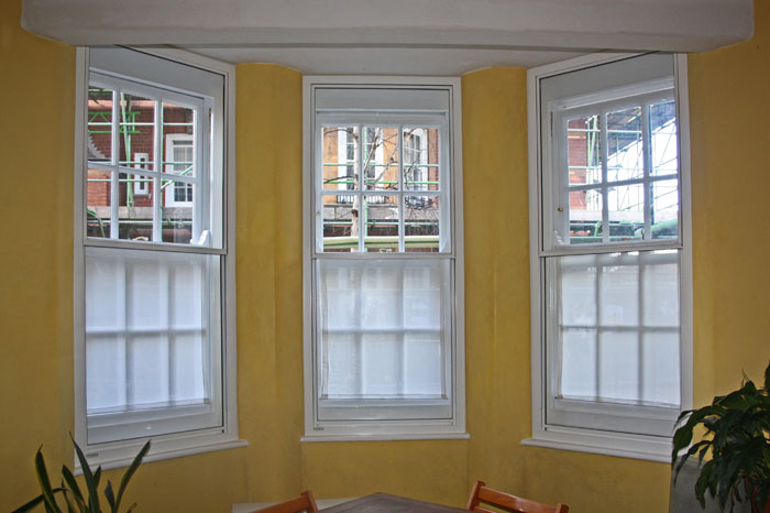 Southern Housing Group now is undertaking the complete restoration of the original single glazed box sash timber windows, many of which are in bays. The single glass could not be changed and in order to meet the required level of thermal insulation secondary glazing was proposed by architects Brodie Plant Goddard following consultation with the local authority’s Conservation Officer. It was a condition of the local authority’s approval that no additional sight lines be introduced. Selectaglaze assisted with the development of the scheme through provision of samples and meetings with tenant representatives. A slim secondary sash design was chosen to match the external window and allow blinds or curtains to be retained. A white powder paint finish ensures that they complement the newly painted primary windows and the needs of safety were met by incorporating toughened safety glass throughout. The outcome is a warmer, more comfortable environment with the additional benefit of high levels of noise insulation. The full project involving more than 1500 windows has been managed by Vinci with a full time on-site team to ensure close liaison with tenants.