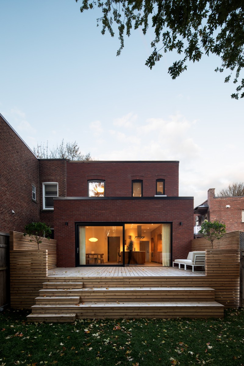 RobitailleCurtis presents Grey residence, a renovated 1905 residence in Montreal’s Notre-Dame-de-Grâce neighbourhood. Purchased by a young doctor couple during the pandemic, the home required expansion and reorganisation to undo the work of a poor renovation 10 years previous, and to make it fit their needs—which shifted while the project progressed with the growth of their family. A seven-foot addition to the back of the property allowed for a larger and more open kitchen and dining area, with access to a new raised outdoor deck through a huge, west-facing sliding glass door.