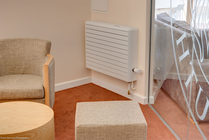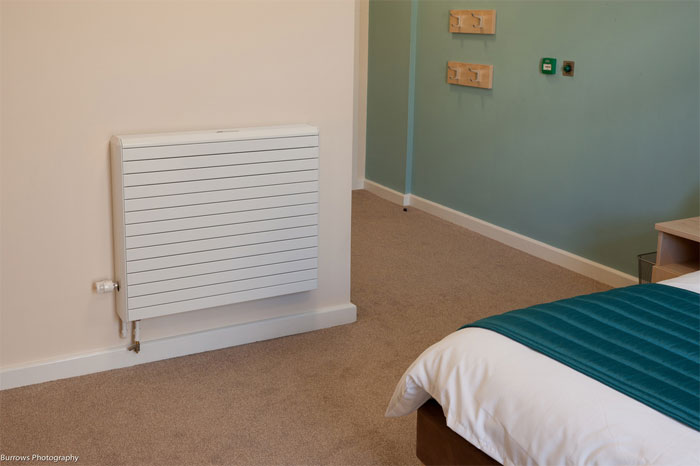 A total of 95 Jaga Maxi LST radiators were installed throughout the site, including two per family room and three in the reception. All were equipped with Jaga’s Dynamic Boost Effect (DBE) technology to provide high output at low flow temperatures and a flexible, fast response. While this allowed for the necessary heat pump compatibility, it also meant the temperature of each room could be controlled by its occupant – a ‘must have’ functionality for Justin. “Jaga’s DBE technology gives the occupants complete control over the temperature of their room,” said Justin, “the boost functionality was essential to this project.” Also, with noise levels around 30db(A), the DBE unit fans are quieter than a domestic refrigerator and are therefore ideal for creating a warm, quiet, comfortable space.