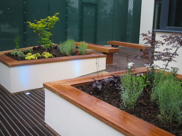 Richard England, director at P. R. England & Sons Ltd, said: “The colour of Iroko offers a stunning, natural way of framing the raised flower beds and brings a welcoming, warm feel to the seating areas. While the timber is light brown when dry, the colour of the product becomes a deep, dark brown when wet, offering stunning visuals in all weather conditions.