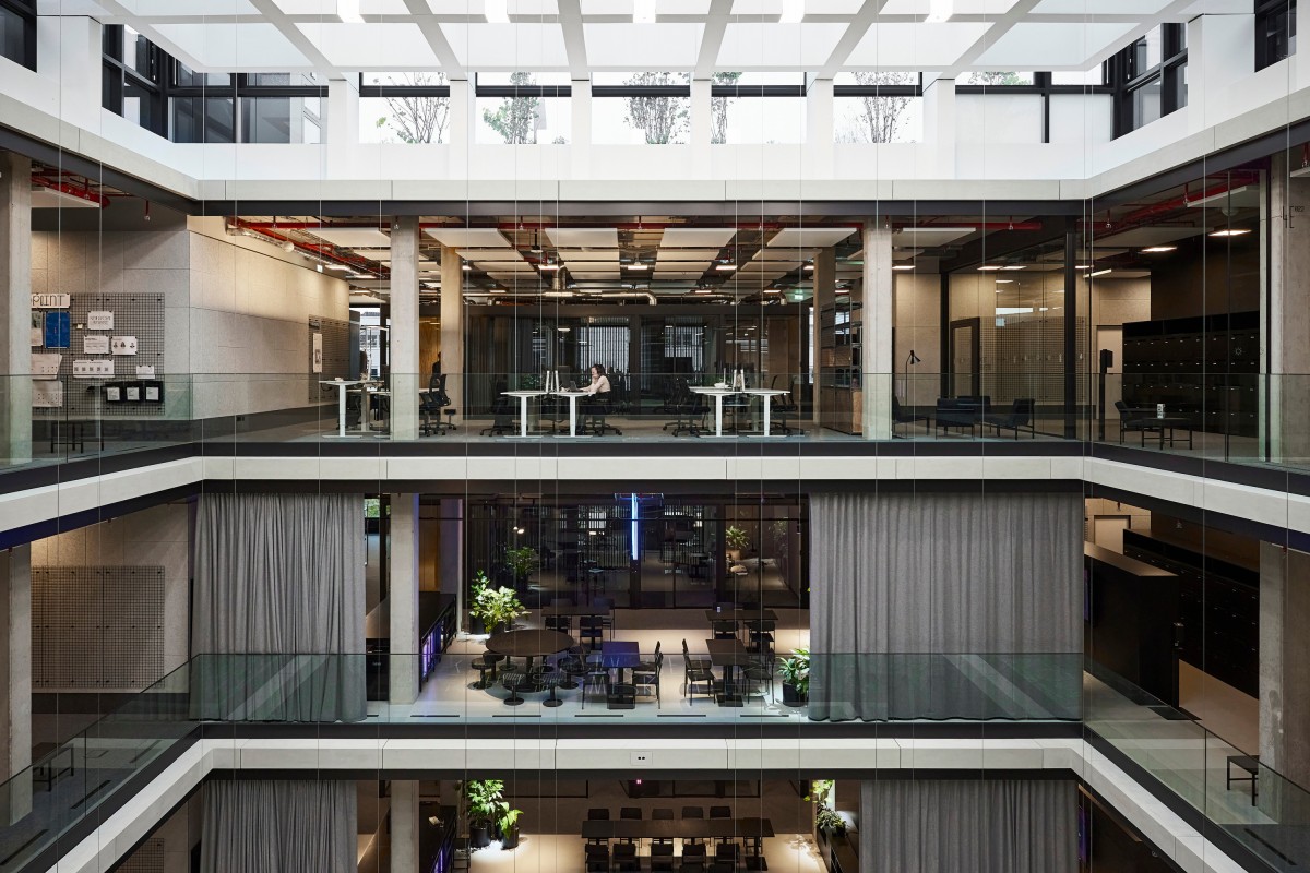 HENN’s design of the House of Communication for the Serviceplan Group in Munich, Germany, creates a distinctive spatial identity for the world’s largest owner-managed agency group for innovative communication, rooted in the company’s ideals of openness and collaboration. Connecting three separate buildings via bridges, the design concept brings 40 different agencies and 1,700 employees together under one roof on the iCampus, a new innovation district near Munich’s Ostbahnhof, developed by R&S Immobilienmanagement. HENN devised the headquarters as a small city, a concept known as office urbanism. Like a city, the House of Communication includes spaces to meet, eat, and relax alongside meeting rooms and individual work areas.
