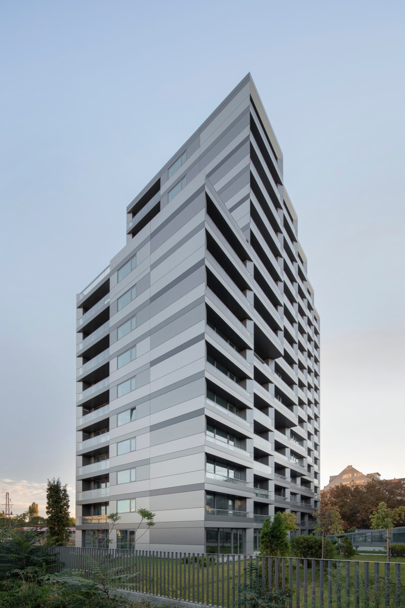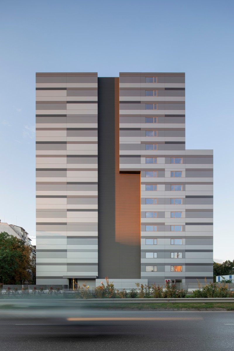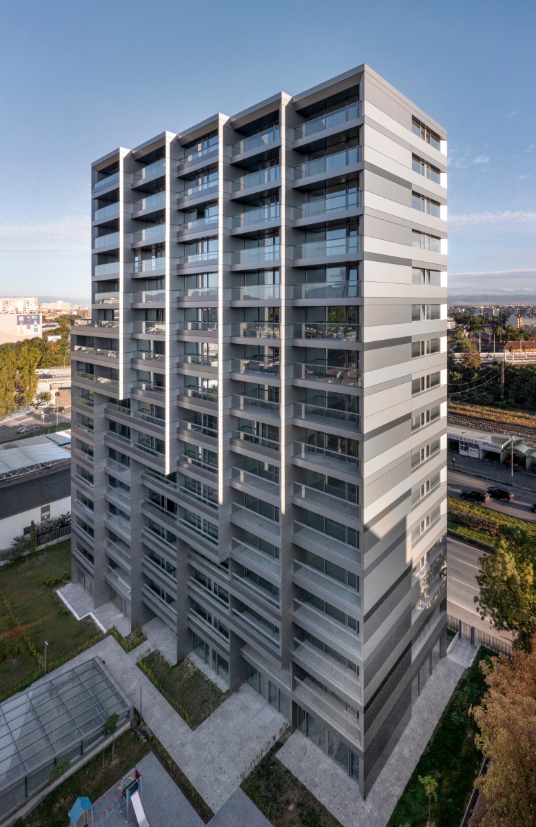 Svetoslav Stanislavov and STARH present Infinity Park, a residential building on property locked between dynamic General Danail Nikolaev Blvd. and peaceful Zaimov Park, in the Bulgarian capital city of Sofia. The specificity of the property and the proximity to the park are the basis of the architectural concept for creating a contemporary residential building with a clean and elegant geometric volume.