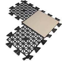 The system, which is made up of interlocking modified flexible polymer tile holders, can be laid on almost any flat surface including previously tiled areas.