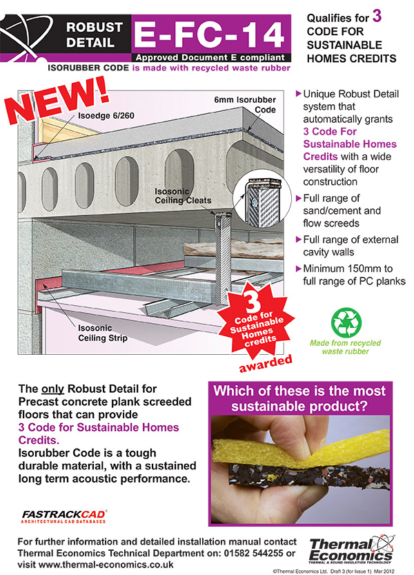 It is a unique under screed floor sound insulation system that can achieve Three Code for Sustainable Homes Credits by virtue of the Robust Details tests assessment and without any further site test requirements.