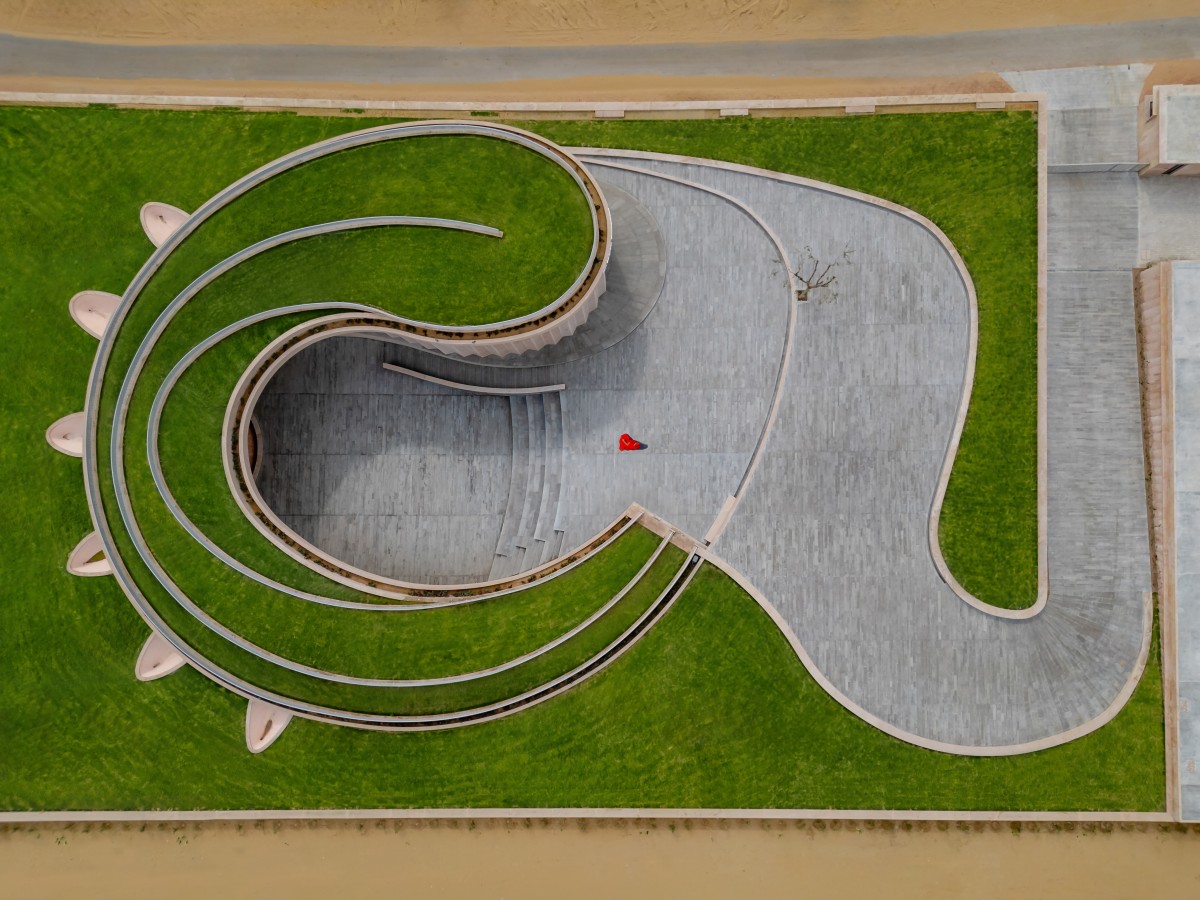 SANJAY PURI ARCHITECTS present the Nokha Village Community Centre, located in the desert region of Nokha in Rajasthan, India. The sweeping curvilinear volume rises up from the northeastern corner, looping around the site and rising up on the northwest corner to create a north facing open courtyard.