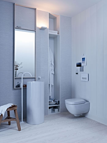 Bringing a whole new feeling of freshness to the bathroom, Geberit DuoFresh extracts nasty odours from the bathroom without the user even knowing it is there, as it is cleverly concealed within the cistern behind the wall. Even a bathroom that is poorly ventilated will be left with pure fresh air, as active carbon filters clean the air and resupply it to the room. Rather than simply masking an odour as with an air freshener, any lingering unpleasant smells are dealt with directly in the pan, where clean air is gently expelled as soon as the push-button on the flush plate is activated. Even better, with Geberit DuoFresh even the flush water emits a pleasant smell thanks to a practical insert for in-cistern blocks, which offer a discreet alternative to unsightly rim blocks.