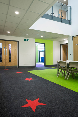 The stars are shining at the new Orion Primary School in the London Borough of Barnet thanks to its exciting new Supacord carpet, supplied by UK-based fibre bonded carpet manufacturer Heckmondwike FB.