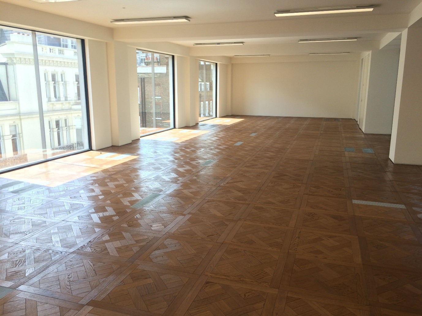 At 28 Savile Row, an 18th Century building originally part of the Burlington Estate; Allied London embarked on another extensive refurbishment comprising a full internal strip out to the core, demolition of structural partition walls, removal of redundant mechanical and electrical services and plant as well as complete removal and replacement of the façade. AET Flexible Space equipment was installed on each of the six floors comprising one zone per floor. Slimline EC fan terminals were also specified to fit into the shallow 180mm floor void. An additional space and energy saving feature of this refurbishment was installing Daikin 2-pipe heat pumps on external platforms adjacent to each floor removing the need for a central plant. The heat pumps were fully integrated and controlled with the air conditioning system.
