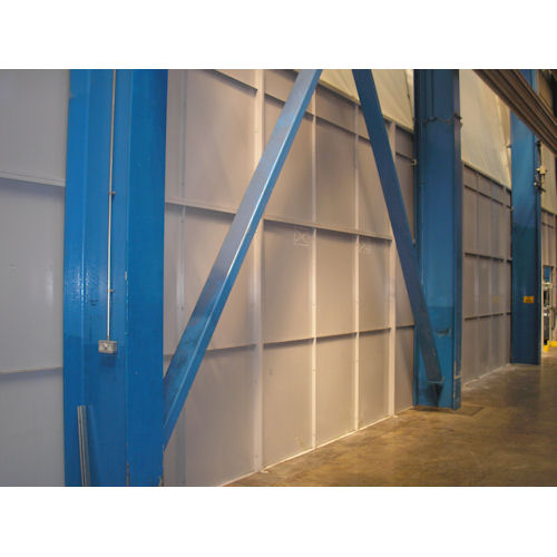 The particular project shown, required the moving of a single skin partitioning system as well as the heat-retaining curtain that was attached above it to create more manufacturing space.