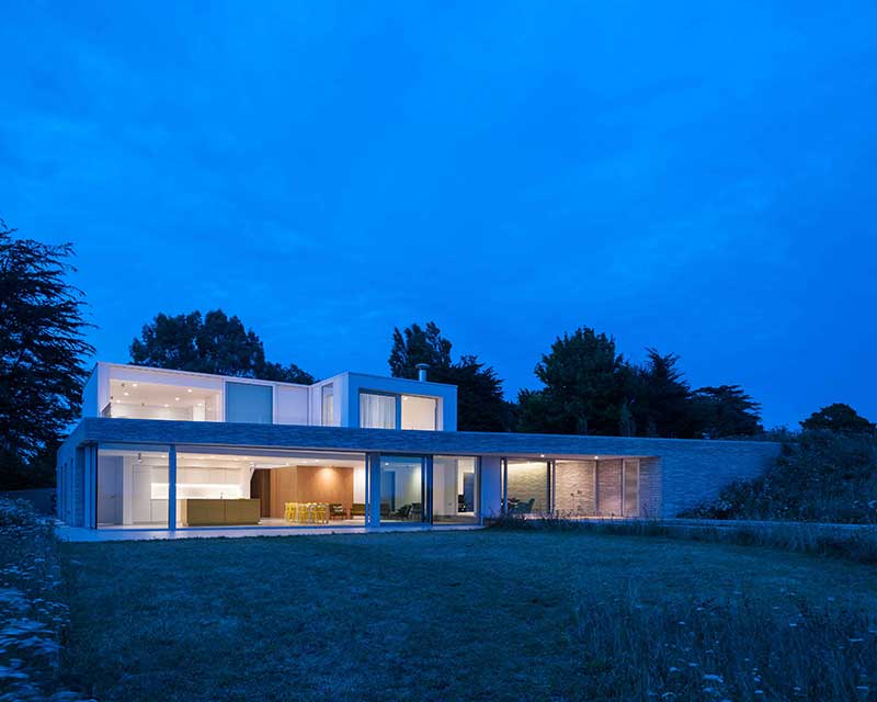 The unfolding relationship between nature and architecture is maintained through the property via the carefully positioned rooflights that allow sunlight to pervade the building.