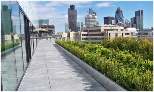 Hot melt waterproofing is a fully bonded system with no joints, ideal for green and inverted roofs on concrete like this one at Riverbank House, City of London, even on zero falls. Hot melt is easily installed by our network of trained and approved contractors, even where there’s roof-mounted plant.