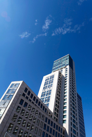 In January, following a three-and-a-half year period of construction, the “Zoofenster” skyscraper, which has been the subject of much discussion, finally opened its doors in Berlin: the international luxury hotel chain Waldorf Astoria moved into the 118 m high tower, prominently located between the Zoo Station and the Memorial Church. The European flagship of New York’s legendary hotel takes up most of the 31 floors, which are also home to office areas and shops. The Abu Dhabi investors pooled around 200 million Euros for the new building. The architect was Christoph Mäckler, who is already famous for his “Lindencorso” (Unter den Linden) in Berlin, and the spectacular new “Opernturm” in Frankfurt. The style of his latest building in Berlin reflects a classically modern and timeless appearance with a light-coloured limestone façade.